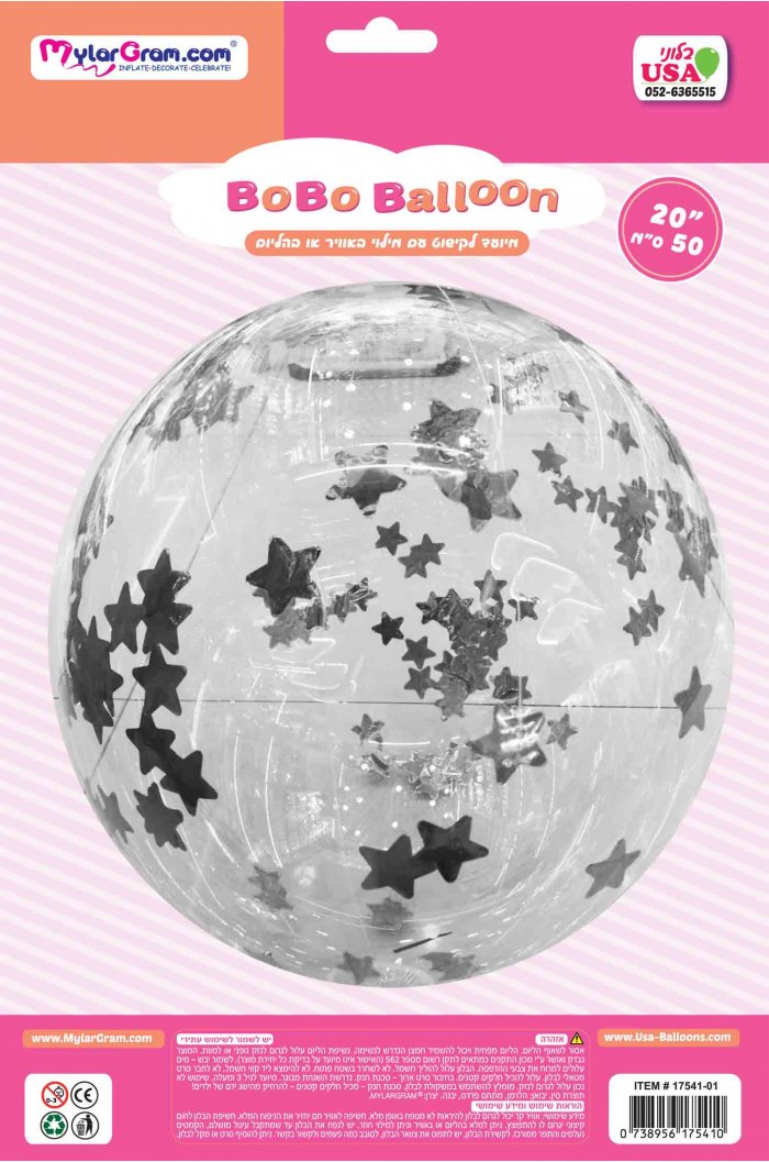 בלון "24 BOBO מילוי קונפטי מטאלי כוכבים כסף