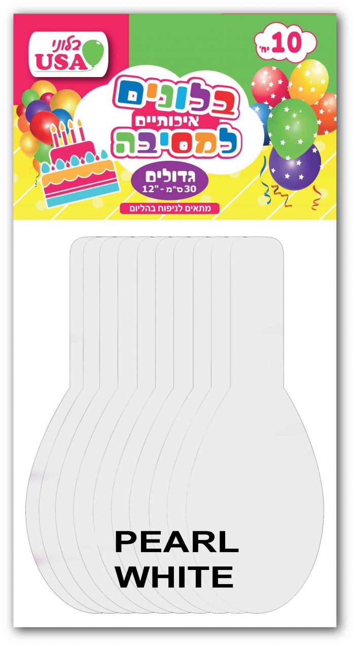 בלון גומי "12 לבן פנינה מטאלי 10 יח'