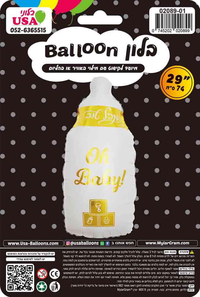 בלונים בעברית ברכות PU
