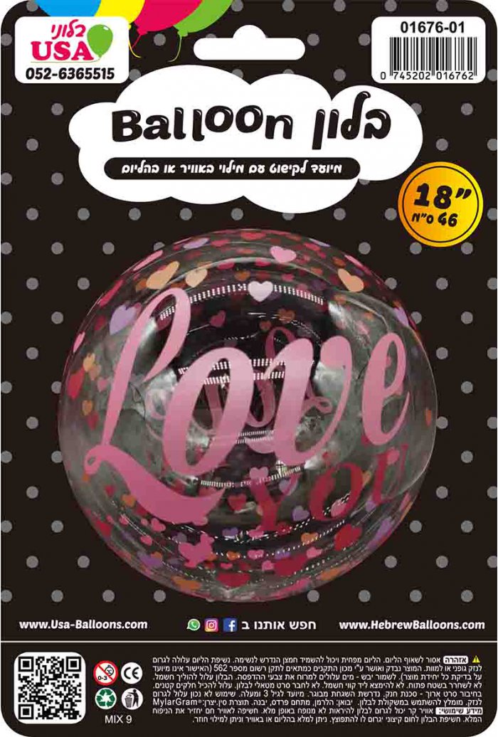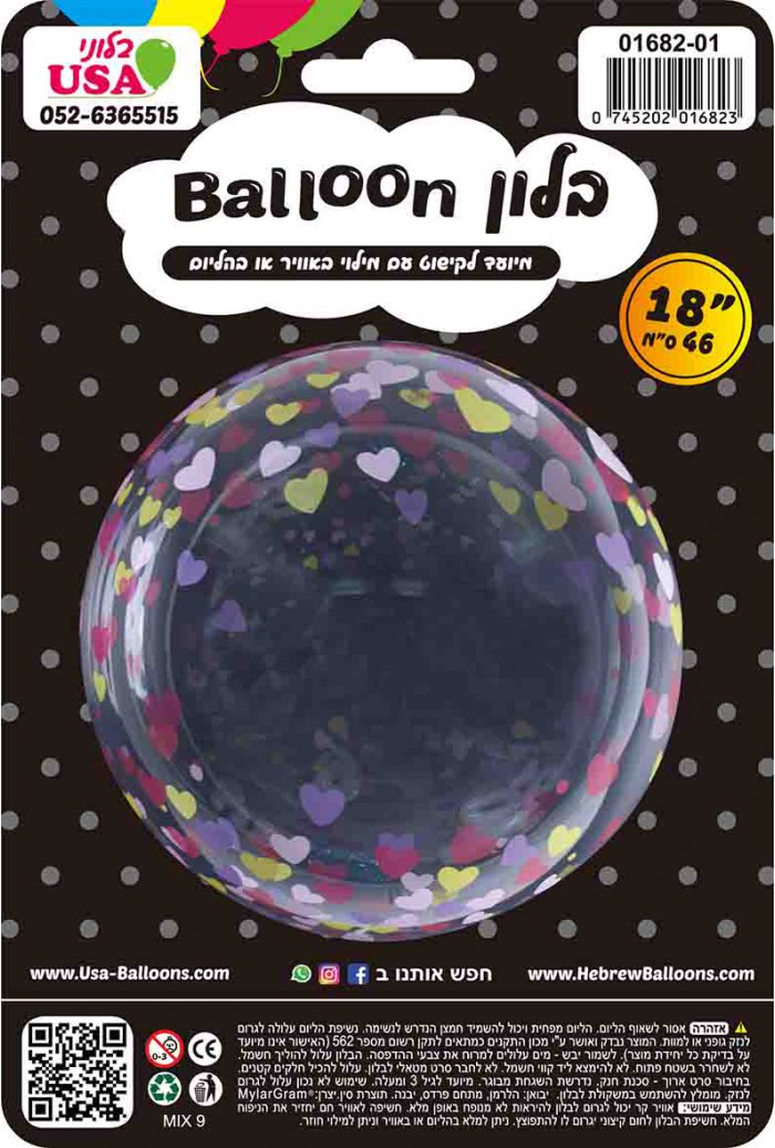 מבצע בלון "18 BOBO לבבות צבעוניות