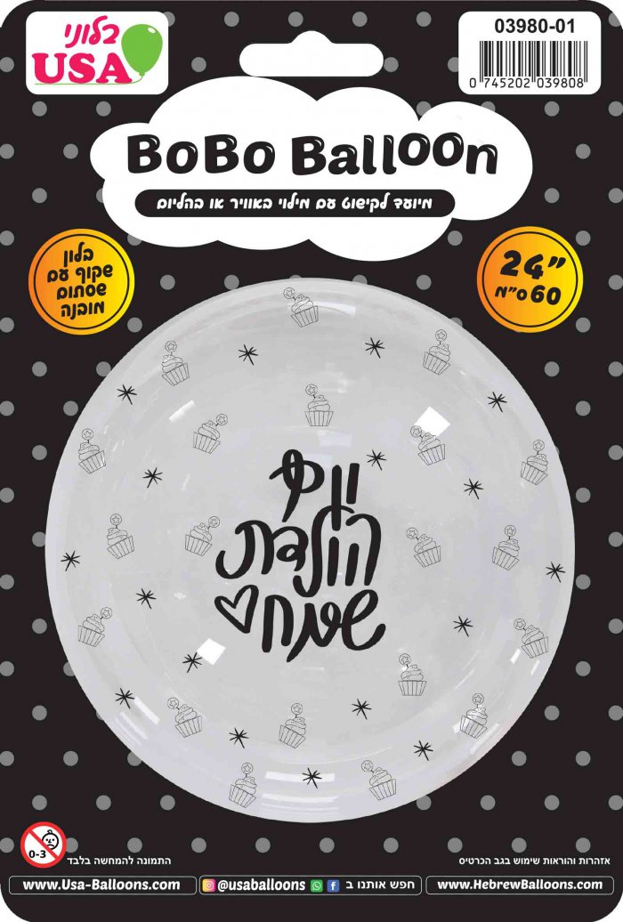 בלון "18 BOBO כפרה עלייך מודפס בכסף