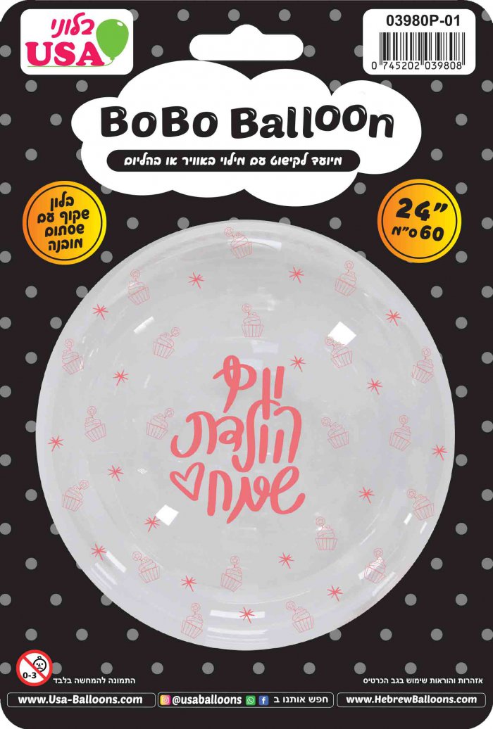 בלון "24 BOBO מזל טוב לבת מצווה הדפסה ורוד עם שסתום
