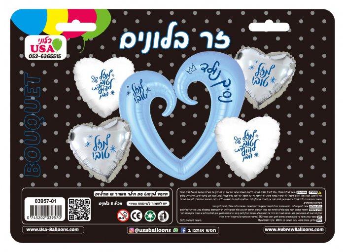 זר 5 מיילרים מזל טוב לב חלול לבן